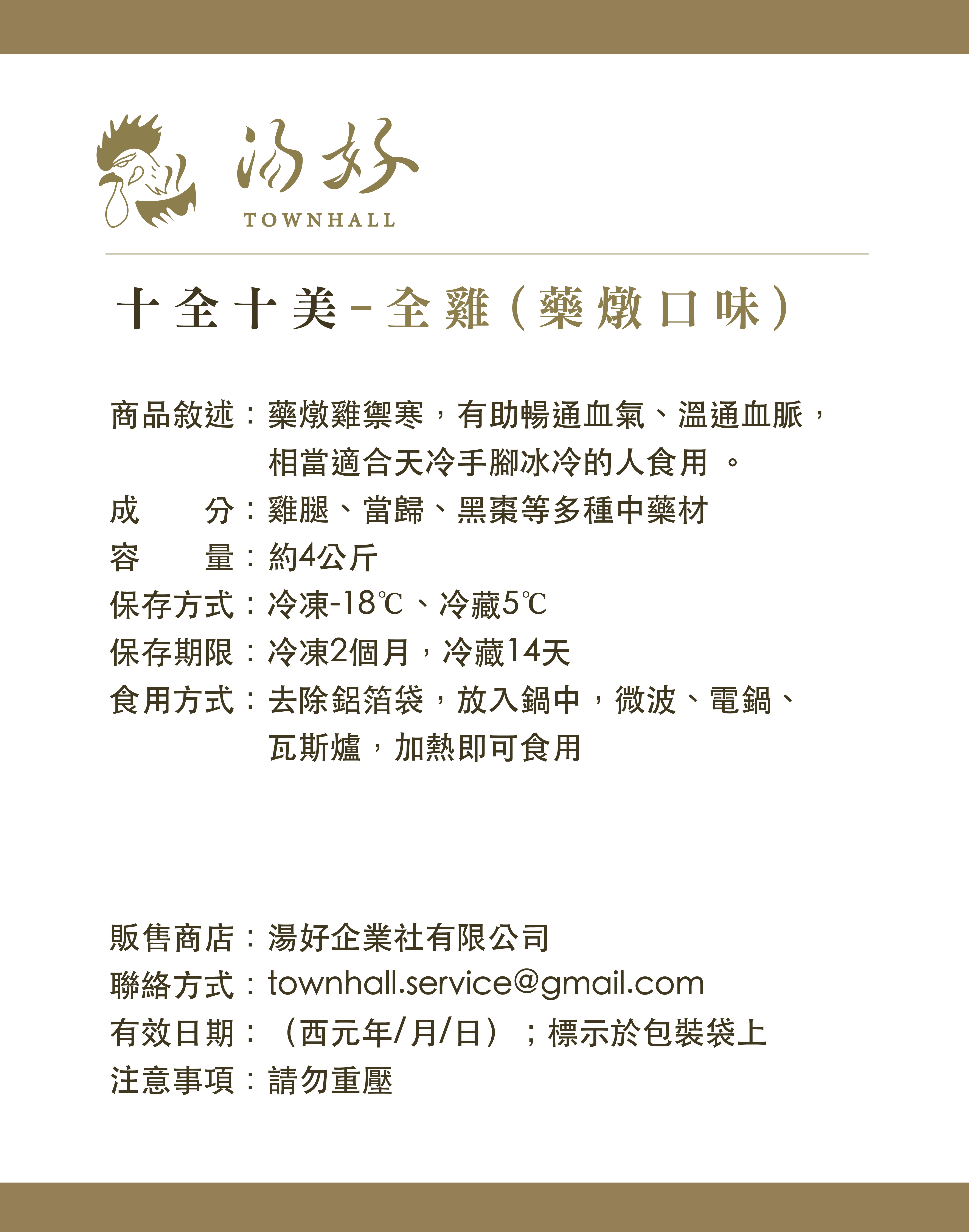 成分:土雞1隻、當歸、黑棗等多種中藥材