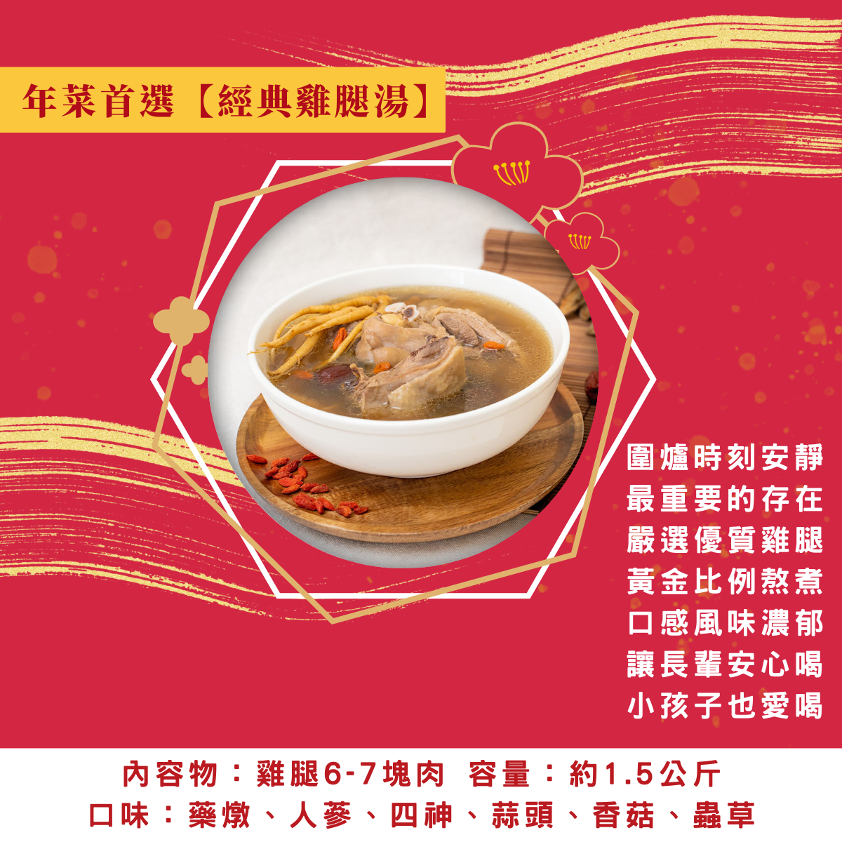 1. 雞腿湯(人蔘/藥膳/蒜頭/香菇/四神/蟲草)擇一